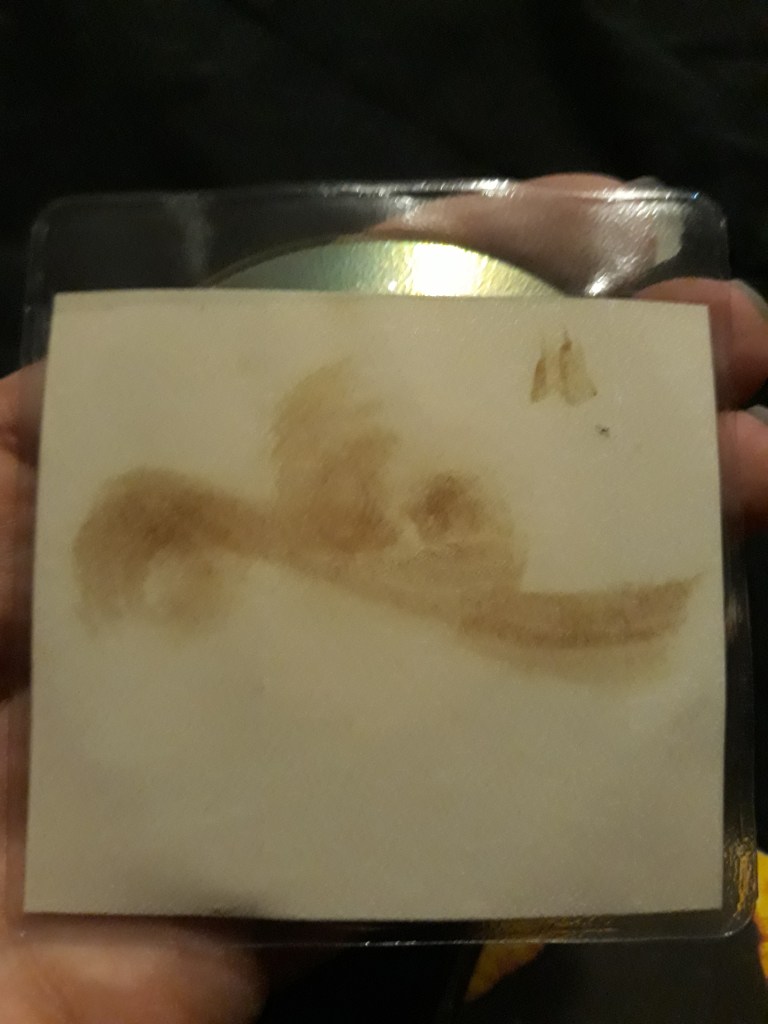 “Every copy was made the similar way and all of them included 3 packed samples of dog feces,” he explained. “The feces were collected during walks with my dog Chi. The completed covers for the entire edition were sent to Björn in Leipzig, who added the disc. I don’t know if this was the first ever record release to incorporate real feces. I’m not aware of any other release with real feces. As a painter, actionist and audio artist it was a natural process to come to this packaging. It is another step from the previous packing I made.”