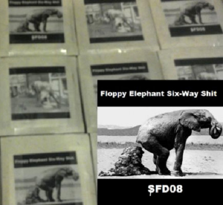 I ask Phelps if he had pondered the philosophical and conceptual value of a dung-packaged release before putting it out, but it turned out it was more of a spur of the moment thing. “There wasn’t much thought put into it, I don’t think. I had this paper, and it was perfectly sized for a floppy disk. I posted on my group that I wanted to do a release in recycled elephant shit and received a lot more interest than I’d expected. So I gave everyone a kilobyte limit and then worked with Kai (Toxic Chicken) and Patrick (RedSK) on the theme a bit.”