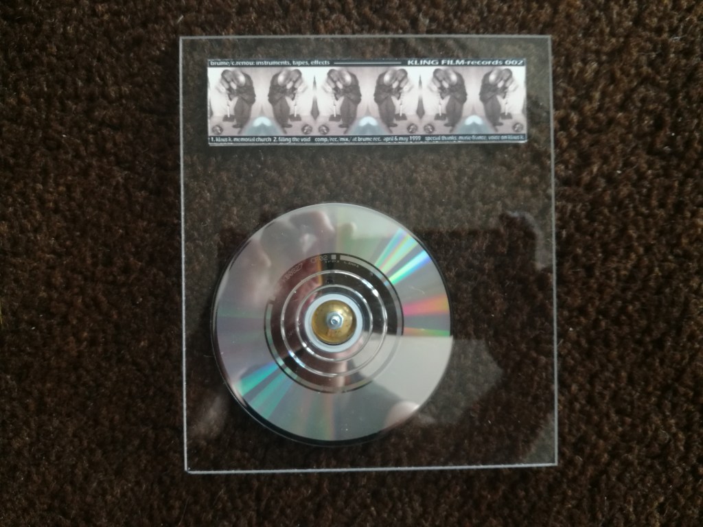There was also a sublabel of Cling Film called Kling Film-Records which was home to four releases. These were plain CDs that came pinned between two plexi-glass sheets on a metal bolt:
